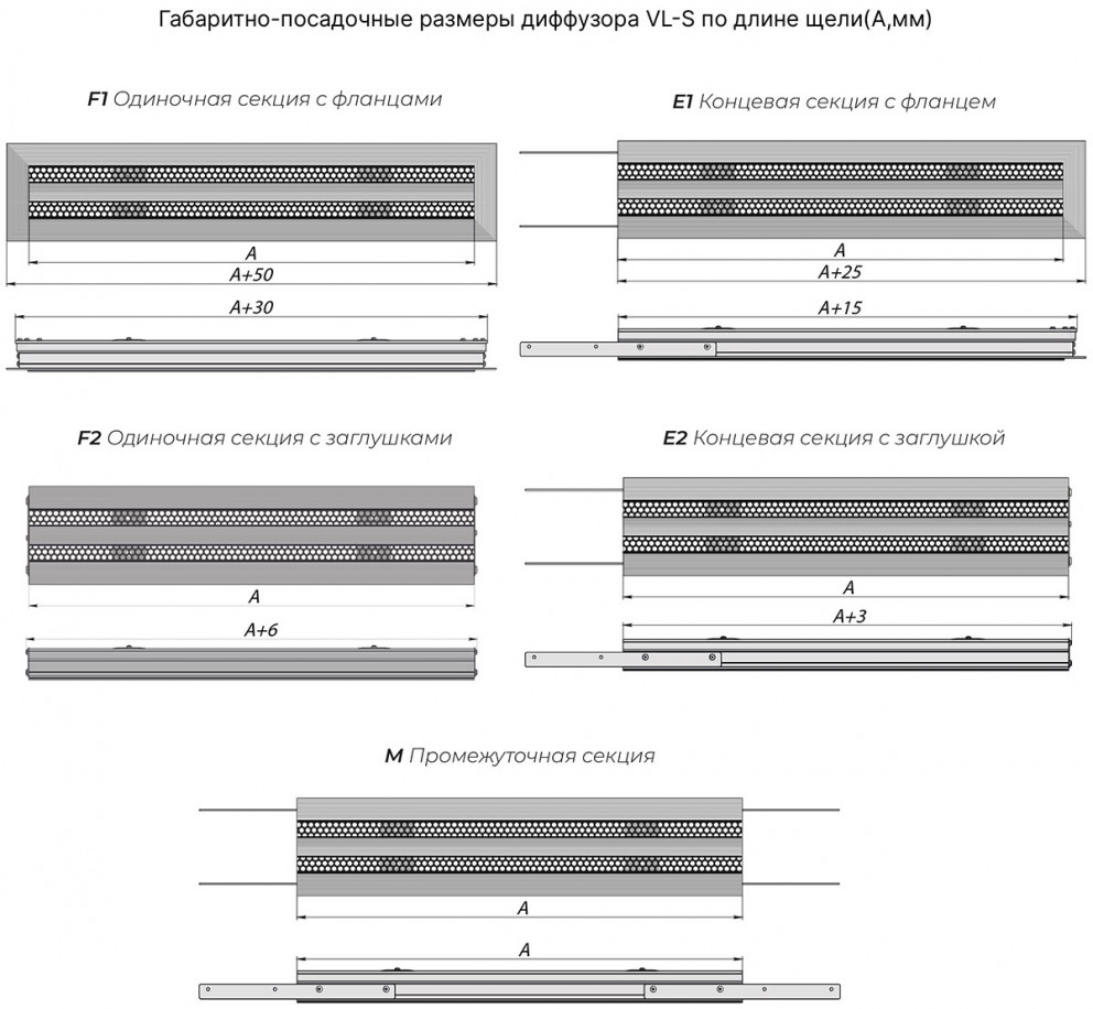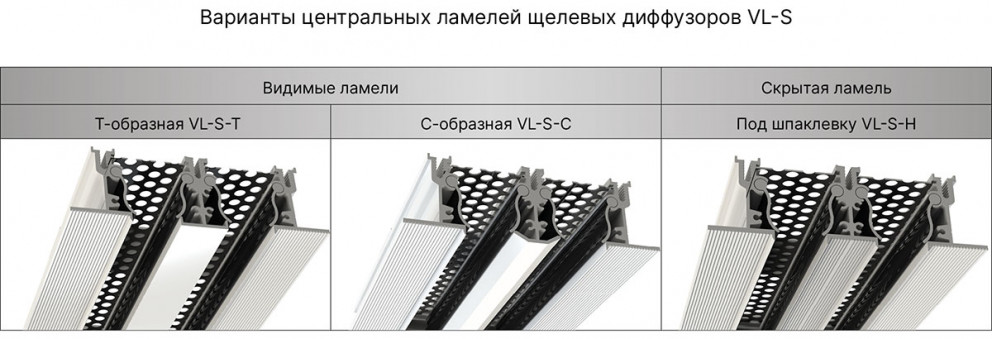 Линейный диффузор скрытого монтажа VL-S под шпаклевку