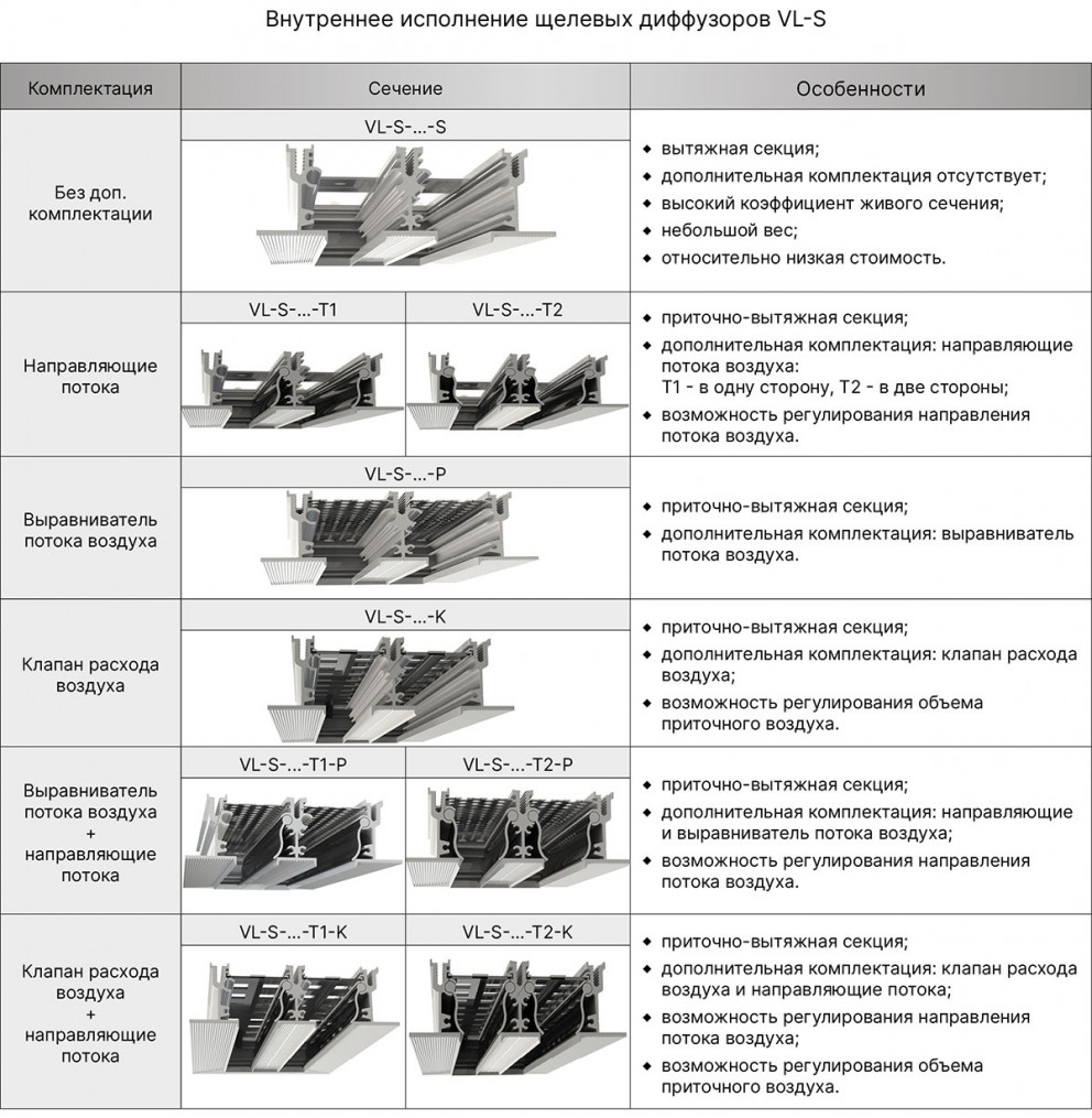 • возможна дополнительная комплектация клапаном расхода воздуха, выравнивателем воздуха, направляющими для регулировки потока;