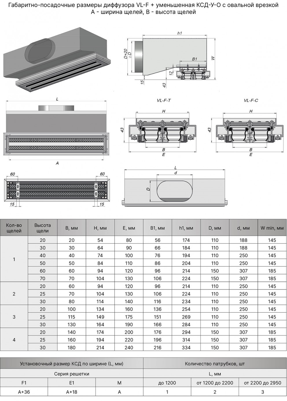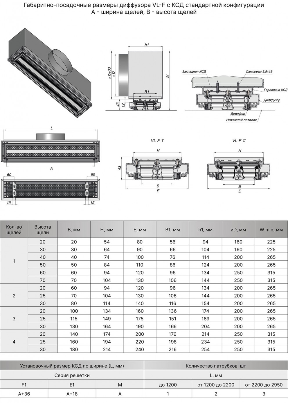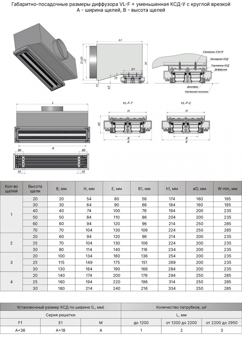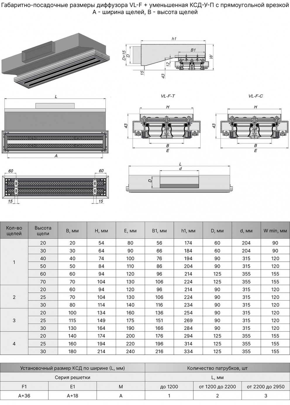 Таблицы быстрого подбора диффузора VL (1 щель, А=1000 мм)