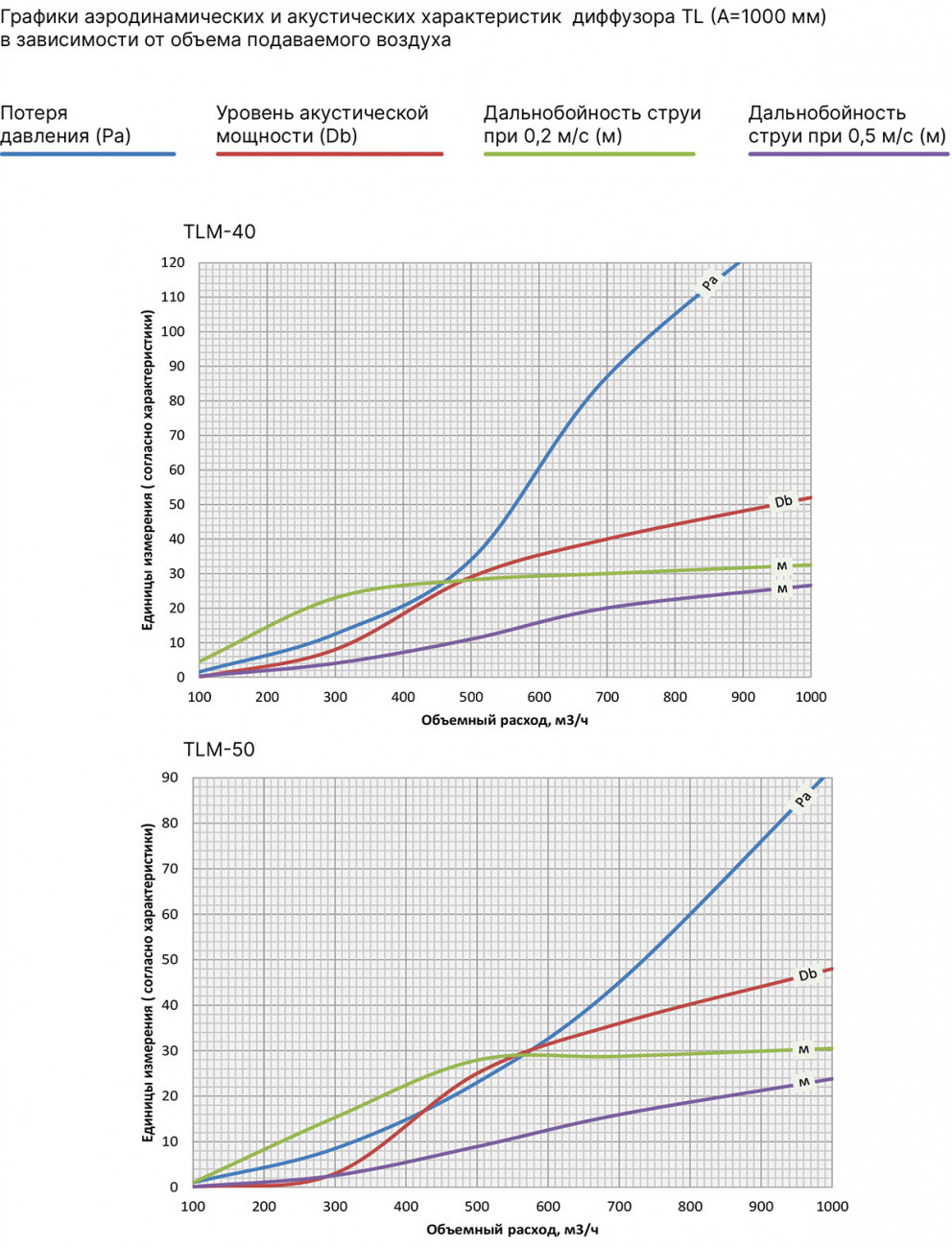 На примере диффузора TLM-20/1000 при скорости подачи воздуха 1 м/с