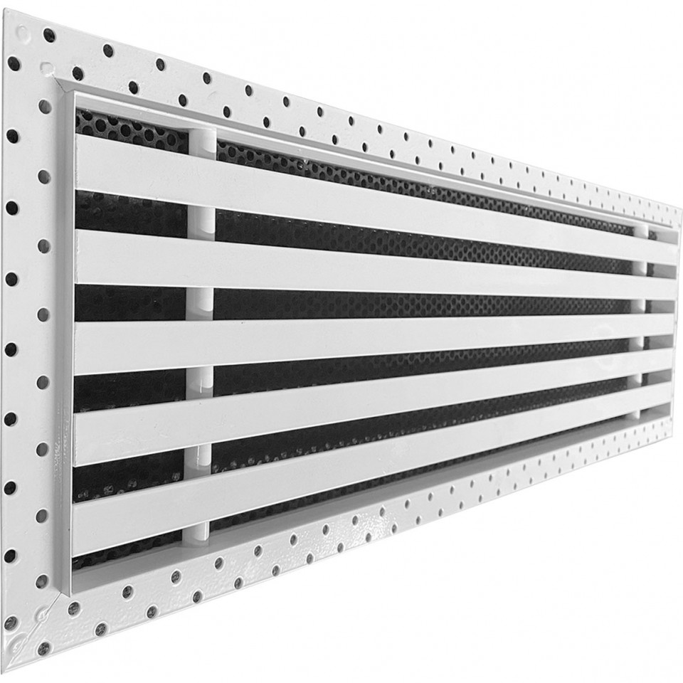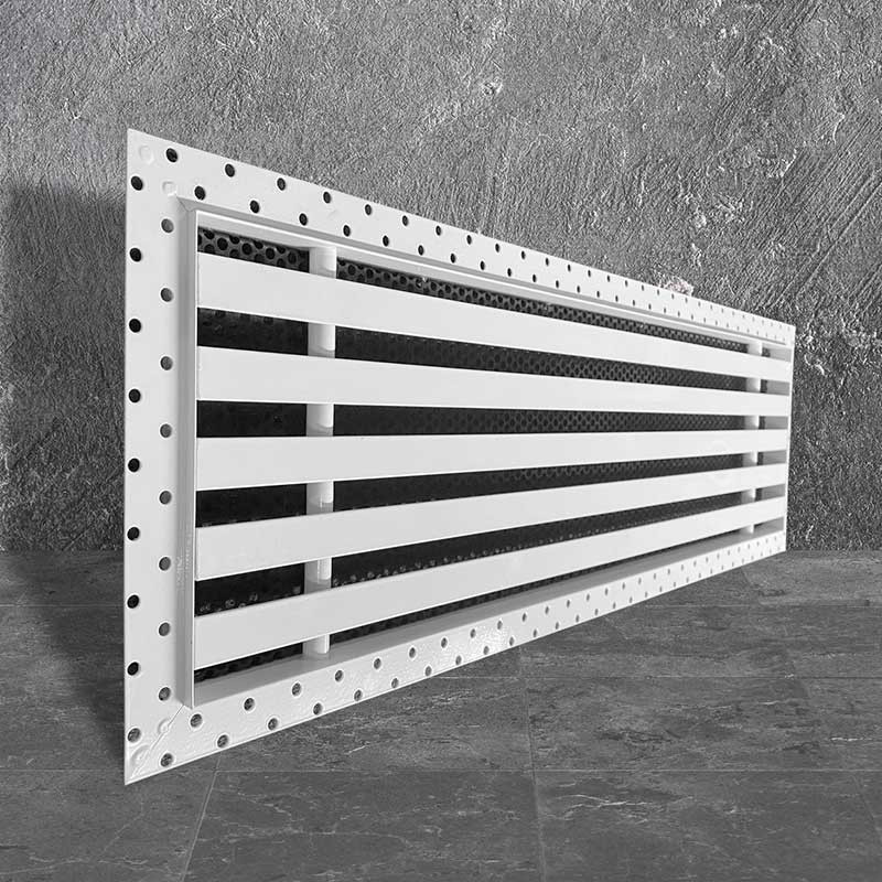 Особенностью решеток серии Airline является полка 6 мм. Чтобы слой финишной шпаклевки был не более 3 мм, рекомендуется выполнить вырезы в листе гипсокартона под рамку решетки и утопить решетку в ГКЛ на соответствующую глубину.